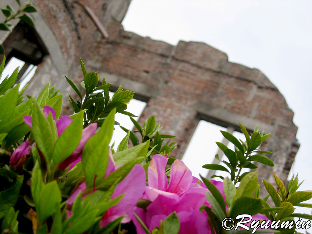 照片是今天4月去看櫻花的時候照的,花叢中這張很喜歡所以弄了桌面,照的時候特意清晰了近前的花朵虛化了背景的廢墟,有點寄托希望的感覺吧〜〜〜