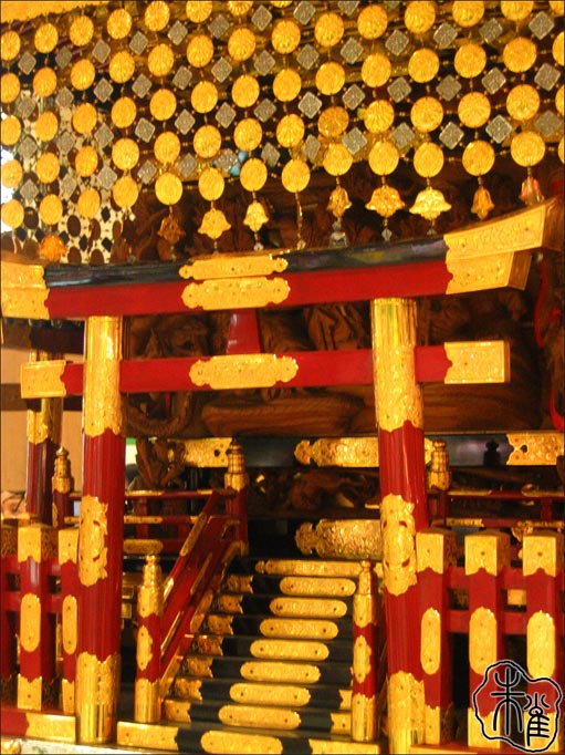 然後後面幾張是意外收穫,剛好踫到下谷神社的神輿在JR上野站展出,金閃閃的華麗麗的…………一大坨,笑。